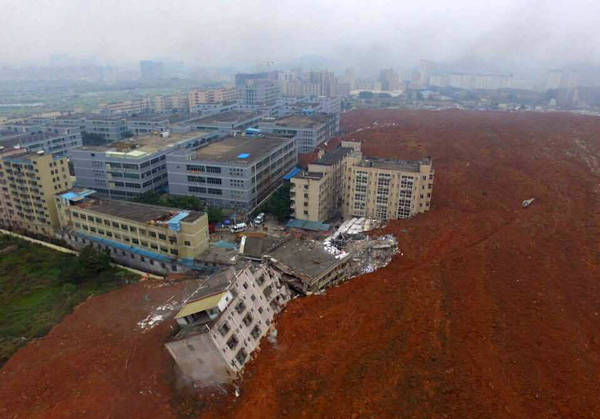 20日上午11時,深圳恒泰裕園區(qū)發(fā)生山體滑坡事故。國土資源部官微通報稱,初步查明深圳光明新區(qū)垮塌體為人工堆土,人工堆土垮塌的地點(diǎn)屬于建筑余泥渣土受納場,主要堆放渣土和建筑垃圾,由于堆積量大、堆積坡度過陡,導(dǎo)致失穩(wěn)垮塌,造成多棟樓房倒塌。
