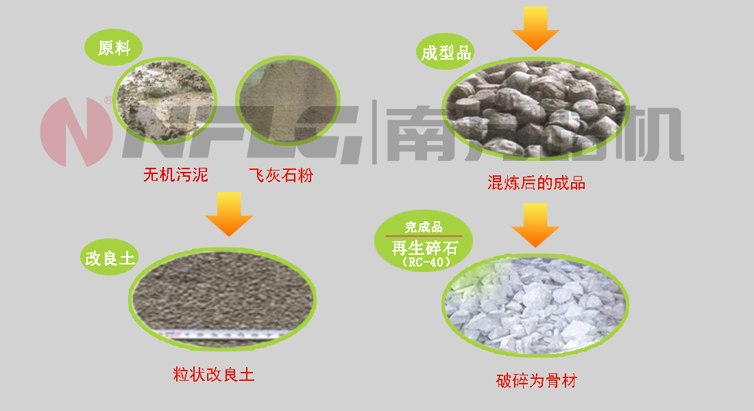南方路機(jī)創(chuàng)新性的余泥造粒再生裝備及工藝,是利用固化技術(shù),讓建筑余泥、石粉等經(jīng)過設(shè)備處理之后成為粒狀改良土和再生骨料的技術(shù)工藝。